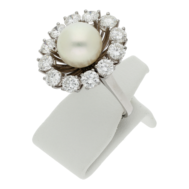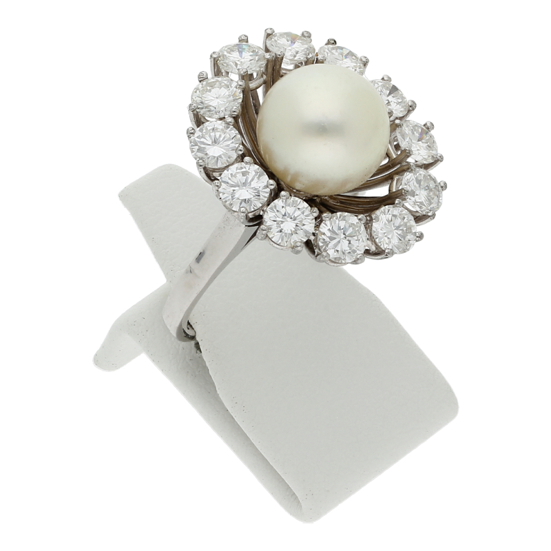 Brillant Perlen Ring 2,40 ct 750 Weißgold Expertise ca. 6900,-