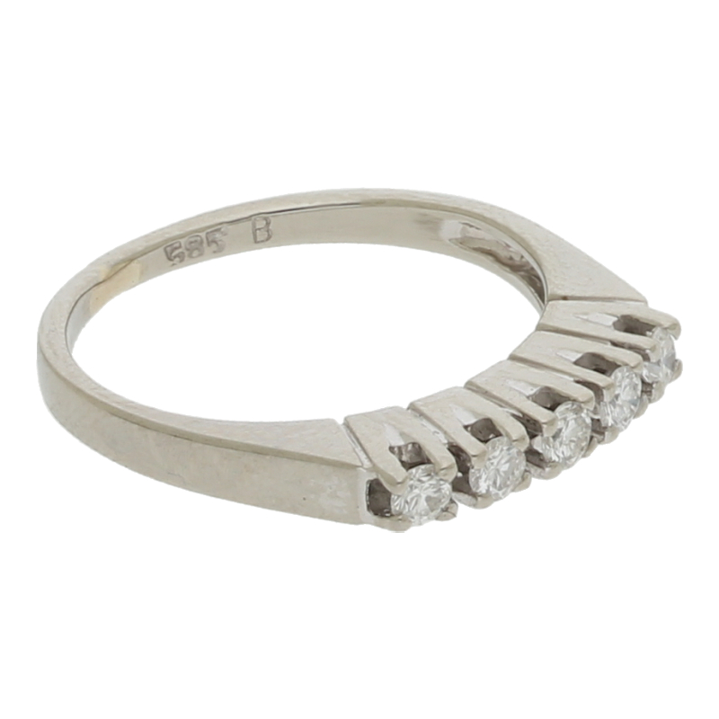 | Diamantinfos: | 5 Brillanten ca. 0,15 ct. (H) Weiß (Si) Kleine Einschlüsse |