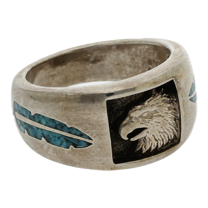 Ring mit Adlerkopf und Türkiseinlagen Silber