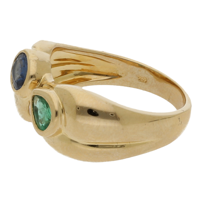Ring mit Smaragd, Saphir, Brillant 15K/750 Gelbgold